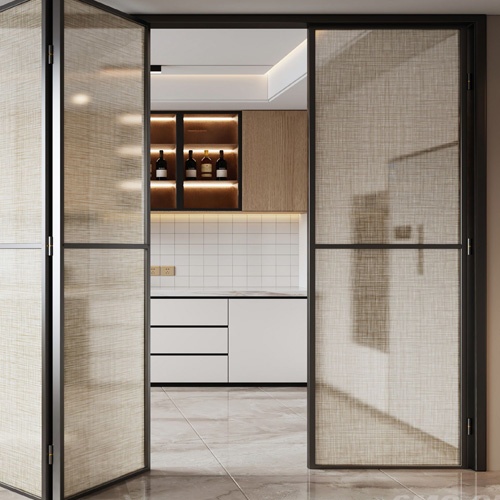 Folding Door with Decorative Fiber Interlayer Laminated Glass Panel