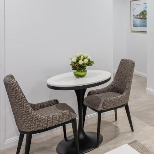 Dining table and upholstered chair in Meriton Suites Sydney, welcome to inquiry and customize your upholstery and furniture for hotel and resort in Australia