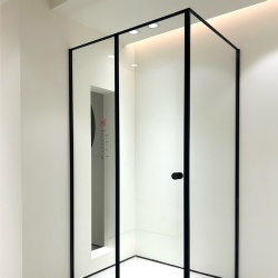Bathroom partition wall divider and door with clear tempered glass, it provides design flexibility for interior designer to create separate space for toilet shower and vanities in bathroom