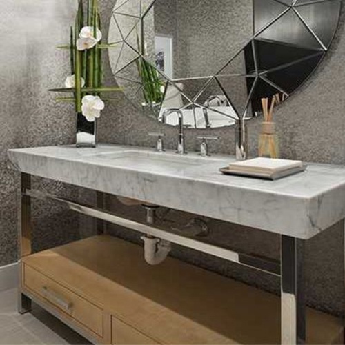 Designer style metal bathroom vanities with marble top
