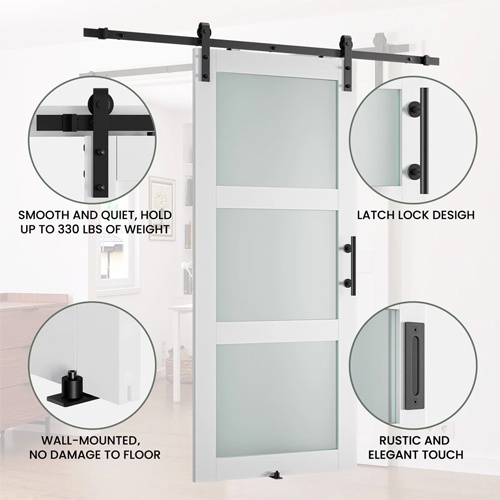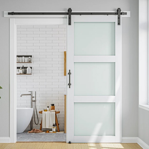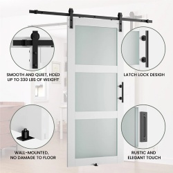 3-Lite Frosted Glass and Wood Paneled Barn Door with Installation Hardware Kit