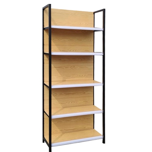 Retail shop display shelves with metal and wood