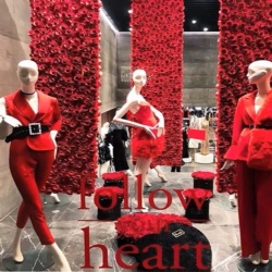 Instead of grouping and showing merchandise in separate categories, complete ensembles are displayed.