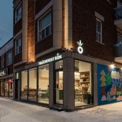 The design of the store was inspired by the Freshly Good logo and the shape of a radish - a circular circulation. There are no confusing aisles in the store. Instead, the furniture runs through the store as if along a ribbon. This makes it easier to move around and leads to a pleasant shopping experience. The wide aisles and the clear alignment of the furniture also support this and ensure visual calm.