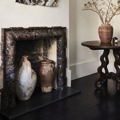 A classically-inspired bolection mould made from Terra Breccia marble to add depth and colour to the space. A look at a few of the marble varieties we work with-each chosen for its unique colour, veining and character. No two pieces are everthe same, making every fireplace truly one of a kind-ready to bring warmth, texture. and individuality to any interior.