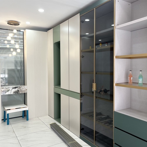 Glass door is framed by aluminum profile with anodized/powder coated finishes